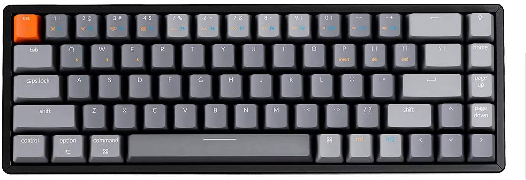 Keychron K6 68-Key Wireless Bluetooth/USB Wired Gaming Mechanical Keyboard, Compact 65% Layout RGB LED Backlit N-Key Rollover Aluminum Frame for Mac Windows, Optical (Blue Switch) (K6T2)