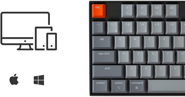 For Mac & WindowsWith a unique Mac layout and Windows compatibility, the K8 is offering convenient accessibility to all the essential multimedia and function keys. Just plug and use, no driver is needed. Extra keycaps for both Windows and Mac operating systems are included. |