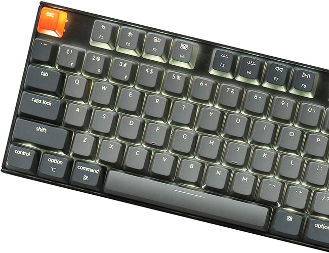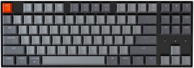 Keychron K8 is a tenkeyless layout (87-key) white backlight Bluetooth mechanical keyboard. The K8 is crafted to maximize your workspace and enhance productivity.