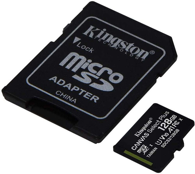 Kingston 128GB microSDXC Canvas Select Plus 100MB/s Read A1 Class 10 UHS-I Memory Card + Adapter (SDCS2/128GB)