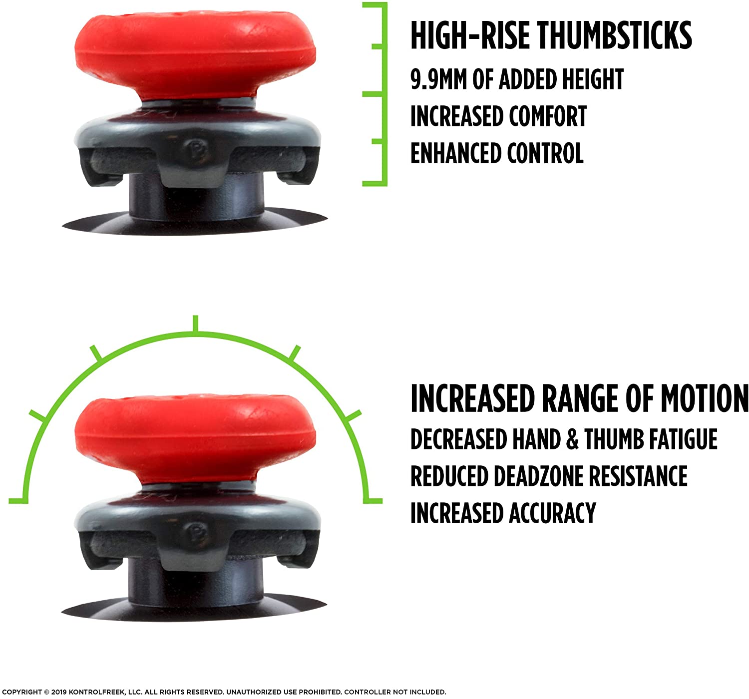KontrolFreek Performance Thumbsticks are designed to provide an advantage in gameplay by increasing the controller’s arc distance and maximizing agility, accuracy and grip. They snap easily on and off your controller’s original thumbsticks, creating a new stick experience that will take your gaming to the next level!