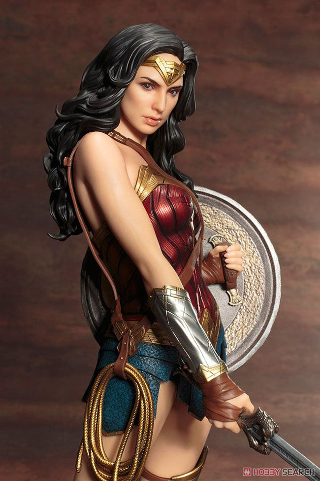 - this work, such a heroic and she brought a different Amazones our initial of the shield and sword and brace class that was used in the movie [the birth of Batman vs Superman Justice], the supple and strong physique is intact , three-dimensional in the pose of the museum style reminiscent of the theater version of the poster art.