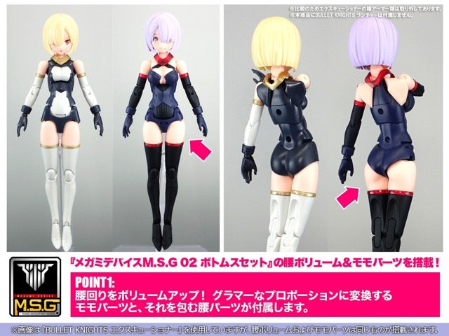This rereleased Megami Device unit uses the base design of BULLET KNIGHTS LANCER and comes with all-new accessories and can be customized with M.S.G for a multitude of customization options. Assemble weapons and armor to this moveable Bishoujo-style model and enjoy creating a different image every time. This model has been made with greater volume around the hips and thighs than previous Megami Device characters.