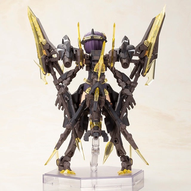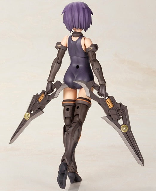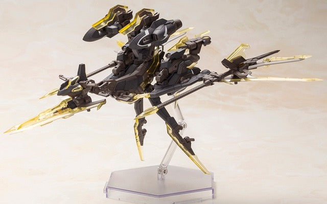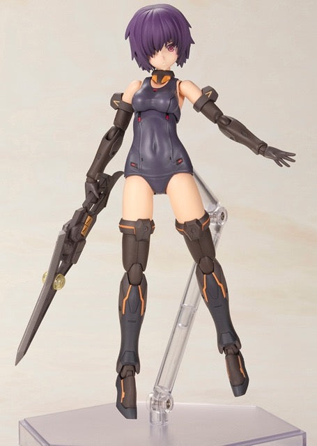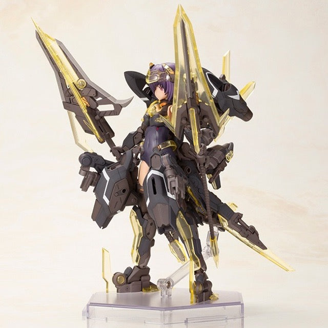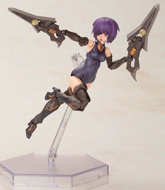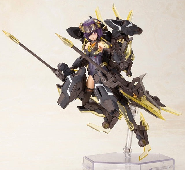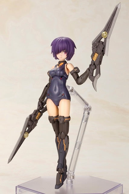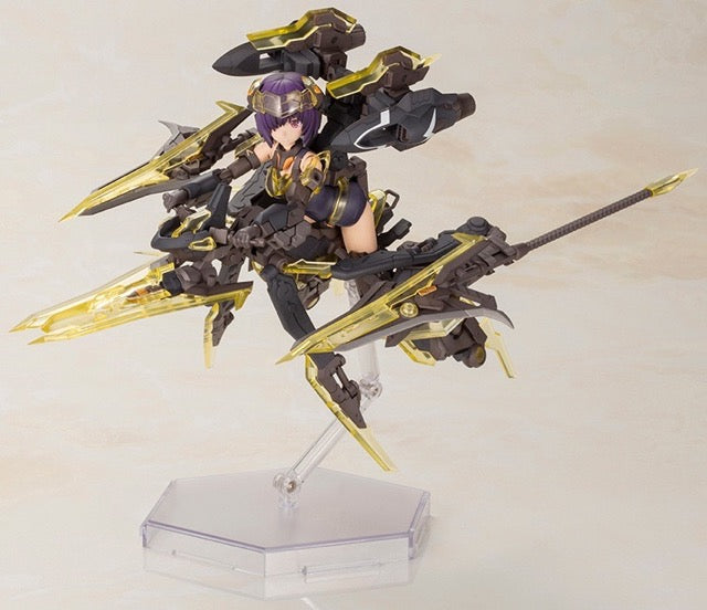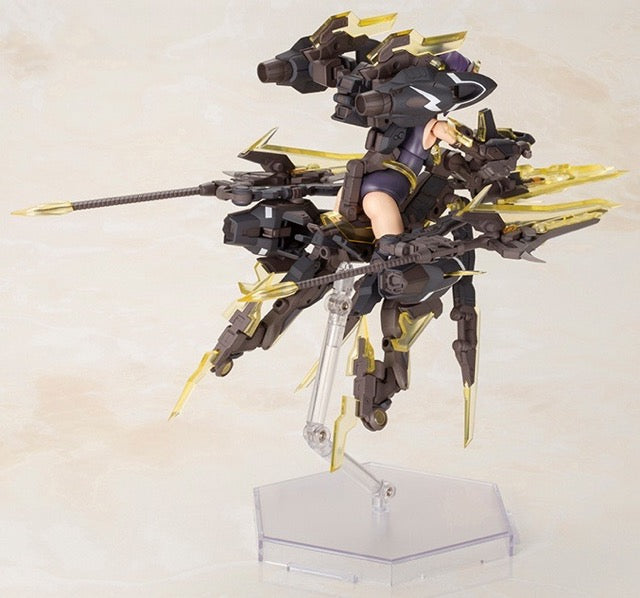 Hresvelgr=Albas is the latest "Frame Arms Girl" figure kit from Kotobukiya! The wing part transforms into a new large weapon, the Gunblade Lance; newly molded parts are included to mount it to the main body, and a large weapon rack is also included. It transforms into three modes: normal mode, assault-trident mode, and air cruiser mode. Two types of normal bangs parts are included, as well as four types to conceal one or the other of her eyes! Four facial expressions are included, as are decals for eyes. A wide range of movement can be achieved thanks to the pull-out shoulder joint, the movable joint in her upper arm, and her sliding hip joints; her hands are ball-jointed for extra expressiveness, too. Five pairs of hands are included, and are compatible with existing Frame Arms Girl figures. The 3mm-diameter ports on her arms and legs allow the use of "M.S.G" and "Frame Arms" series weapons. The tail-shaped part behind her waist can be used as a handheld cannon, and the blade parts attached to either side can be used as handheld weapons too! A New Flying Base is also included. Order her today!