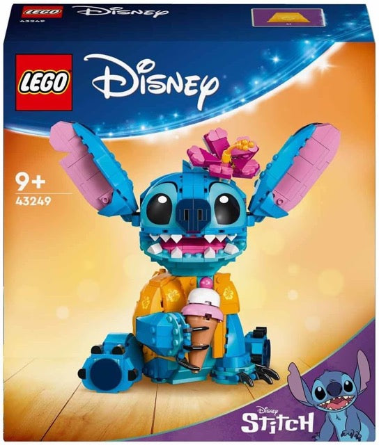 - Disney Stitch character – This creative LEGO® building set features a displayable model from Lilo and Stitch, a buildable ice-cream cone and a flower that can be used to decorate the character