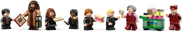 - 8 minifigures – Harry Potter™, Ron Weasley™, Hermione Granger™, Draco Malfoy™, Lee Jordan, Rubeus Hagrid™, the Trolley Witch and the train conductor, plus a family photo album element