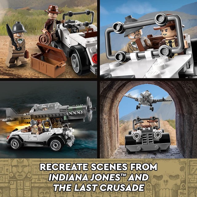 Kids can recreate iconic scenes from the Indiana Jones and the Last Crusade movie with this plane and car playset.