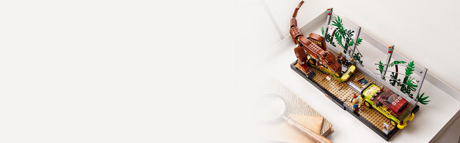 Relive your first sighting of the T. rex in Jurassic Park as you recreate the famous movie scene in LEGO® style.