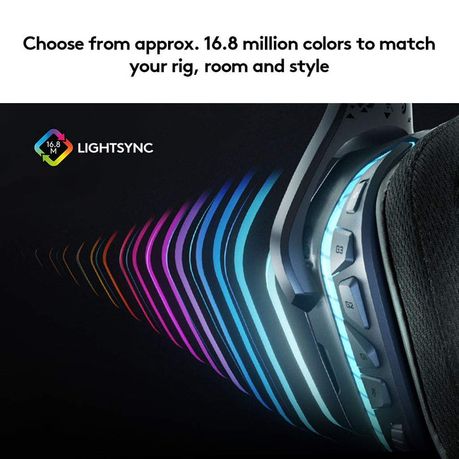 Approx. 16.8m lightsync rgbChoose from approx. 16.8 million colors to match your rig, room and style. You can select preset animations and effects, including lighting that’s reactive to in-game action, audio, and screen color, or program your own via Logitech G HUB |