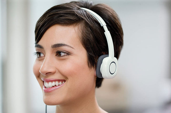 Logitech Stereo Headset H150. Speak clearly. Crisp calls with stereo sound make it easy to stay in touch. The noise-cancelling microphone reduces annoying background noise, so you can be heard clearly. You can wear the microphone on your left or right. And just rotate it up and out of your way when you're not using it. Personalise your fit with the adjustable headband and foam ear cups. Simple in-line controls make it easy to adjust the volume and mute the microphone. It's easy to set up, too. Just plug your headset into your computer's 3.5 millimeter input and output jacks and it's ready to go.