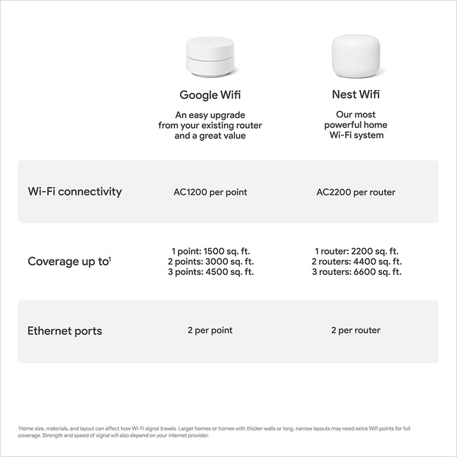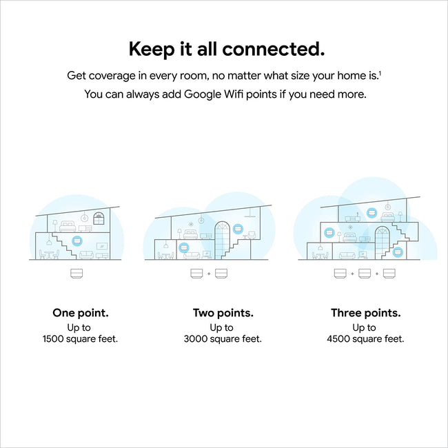 Traditional routers have limited range. A mesh Wi-Fi system like Google Wifi uses multiple Wi-Fi points together to create a connected system that gives you a strong signal throughout your home.[1] You can always add more points to expand your network and keep your connection fast in every room.