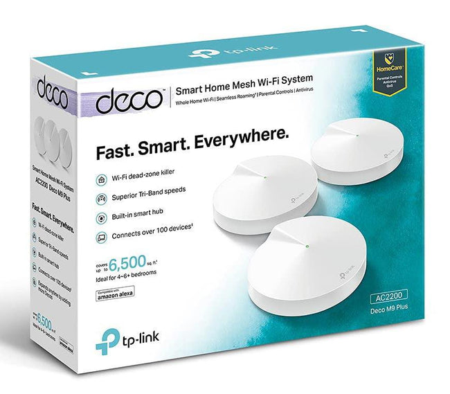 TP-Link Deco M9 Plus AC2200 Smart Home Mesh Wi-Fi System, Qualcomm Quad-Core Processor, Wi-Fi Booster, Antivirus and Parental Controls Router (Pack of 3)