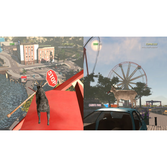 • Destroy and wreck stuff as much as possible in style! Do a backflip while headbutting a bucket through a window to earn ultimate goat points!