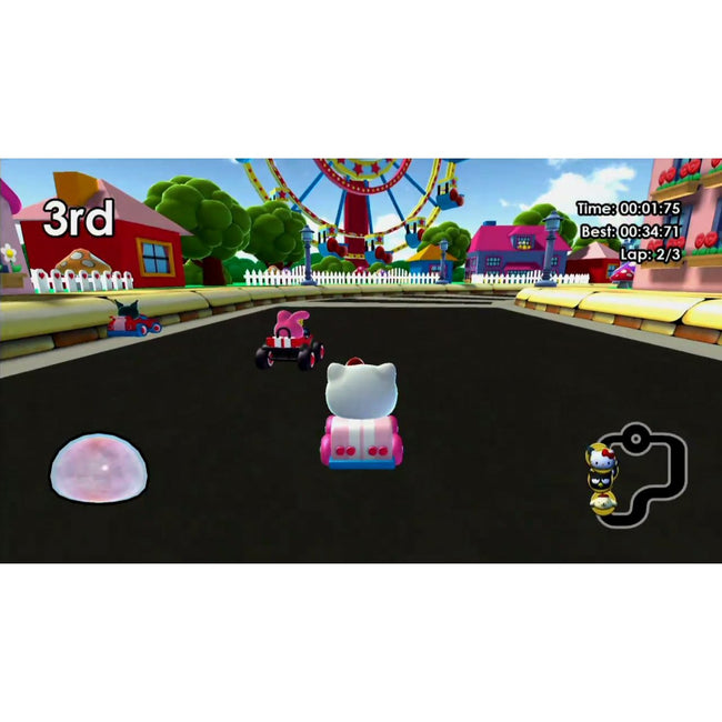 Join Hello Kitty and her Sanrio friends as they race On Land, Through Air and Over Water. Race by yourself or with up to 3 of your friends. Unlock new outfits and vehicles for Hello Kitty and her Sanrio Friends. Challenge your racing skills in the all-new Adventure Mode!