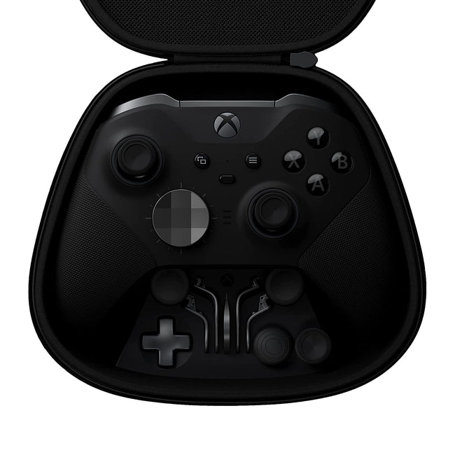 Xbox Elite Wireless Controller Series 2; carrying case; set of 6 thumbsticks: standard (2), classic (2), tall (1), and wide dome (1); set of 4 paddles: medium (2) and mini (2); set of 2 D-pads: standard and faceted; thumbstick-adjustment tool; charging dock; and USB-C cable.