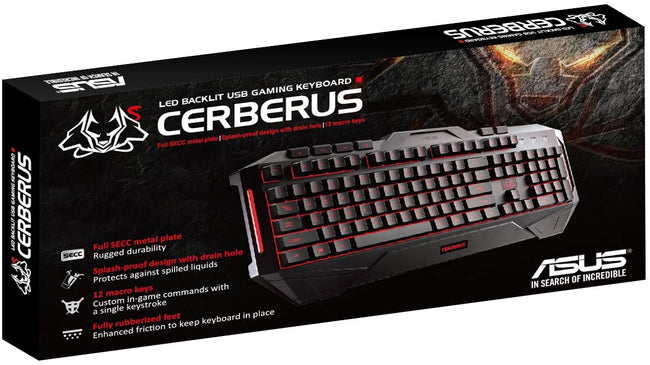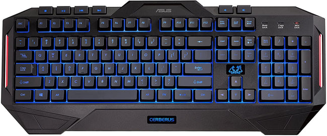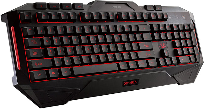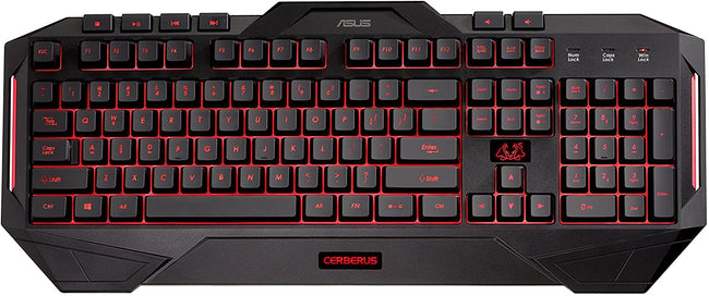 - ASUS Gaming Keyboard Cerberus | Highly Durable, Long-Lasting PC Gaming Keyboard | Dome Switches | Splash-Proof & Anti-Slip | Multi-Color Backlight | Media Controls + 12 Programmable Keys | Black