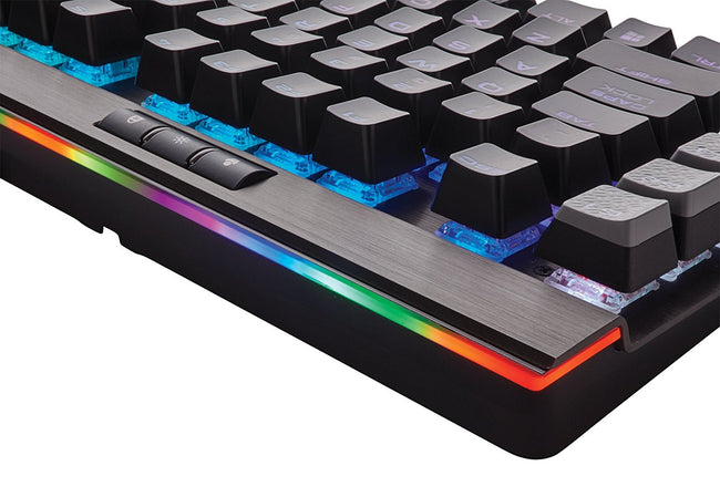 To compete at the highest level, you need the fastest mechanical keyboard there is. RapidFire’s lightning-quick responsiveness and 100% anti-ghosting technology lets you strike with an unmatched combination of speed and precision. And the forged aluminum frame is built to withstand storm after storm of keystrokes, so you’ll always live to fight another day. Corsair Utility Engine (CUE) enables sophisticated macros and dramatic lighting effects. The USB pass-through port is positioned for uninterrupted game play, and a detachable wrist rest keeps you playing for hours.