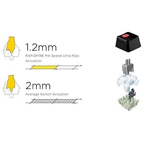 Unleash blistering speed with the 1.2mm mechanical actuation and durability of Gold contact Cherry MX mechanical gaming key switches. Wield the ultimate performance advantage over your opponents with light operation 45g key switches and an actuation 40% faster than standard Cherry MX Red switches.