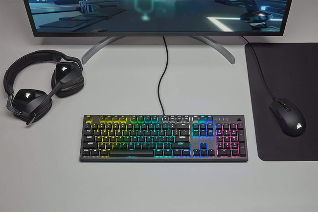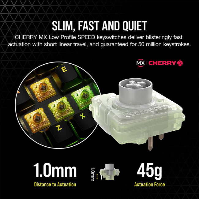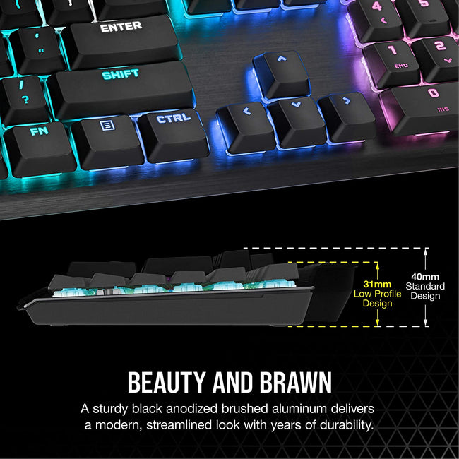 - Corsair Keyboard K60 RGB Pro Low Profile Mechanical Gaming Keyboard - Cherry MX Low Profile Speed Mechanical Keyswitches – Slim and Streamlined Durable Aluminum Frame - Customizable Per-Key RGB Backlighting