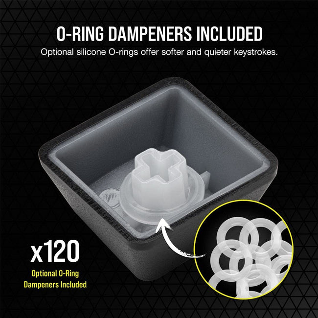 Optional silicone O-rings soften the sound and feel of keystrokes, offering a quieter and more comfortable experience when gaming or typing.