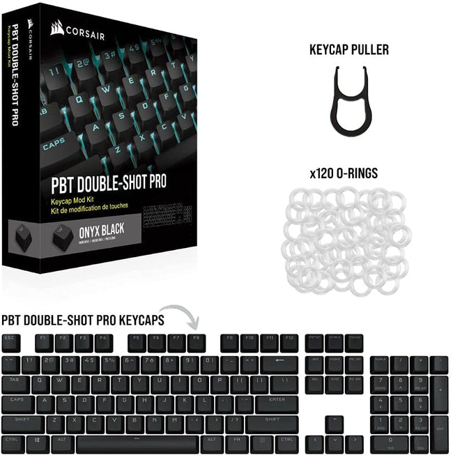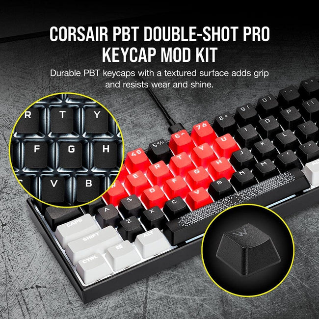 Corsair Keycap PBT Double-Shot PRO Keycap Mod Kit – Double-Shot PBT Keycaps – Standard Bottom Row – Textured Surface - (Onyx Black)