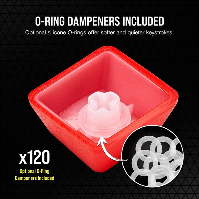 Optional silicone O-rings soften the sound and feel of keystrokes, offering a quieter and more comfortable experience when gaming or typing.