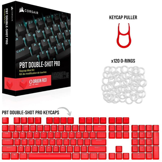Corsair Keycap PBT Double-Shot PRO Keycap Mod Kit – Double-Shot PBT Keycaps – Standard Bottom Row – Textured Surface - (Origin Red)