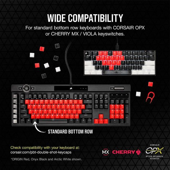 Compatibility: This full-size keycap set is compatible with all CORSAIR mechanical and optical-mechanical keyboards with a standard bottom row as well as all other CHERRY MX-compatible keyboards.*