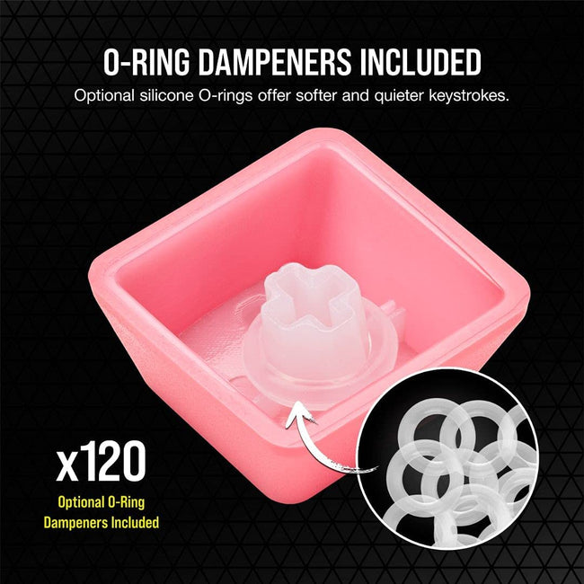 Optional silicone O-rings soften the sound and feel of keystrokes, offering a quieter and more comfortable experience when gaming or typing.
