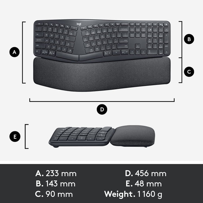 Logitech Keyboard ERGO K860 Wireless Ergonomic Keyboard - Split Keyboard, Wrist Rest, Natural Typing, Stain-Resistant Fabric, Bluetooth and USB Connectivity, Compatible with Windows/Mac