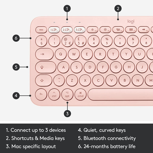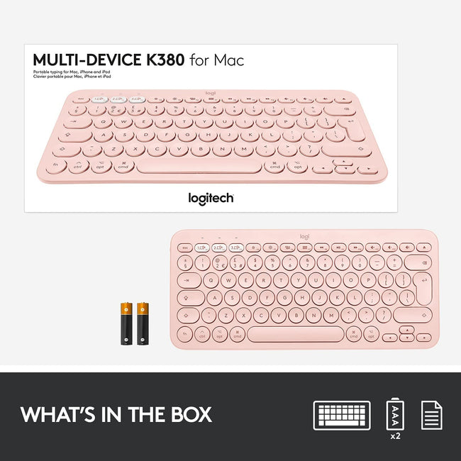 Logitech Keyboard K380 Wireless Multi-Device for Windows, Apple iOS, Apple TV Android or Chrome, Bluetooth, Compact Space-Saving Design, PC/Mac/Laptop/Smartphone/Tablet - (Rose)