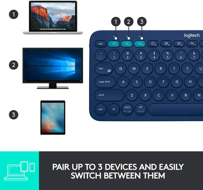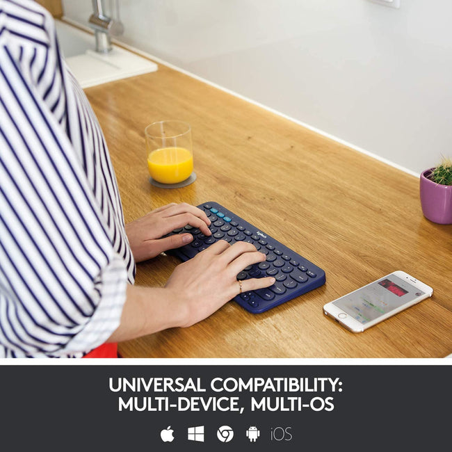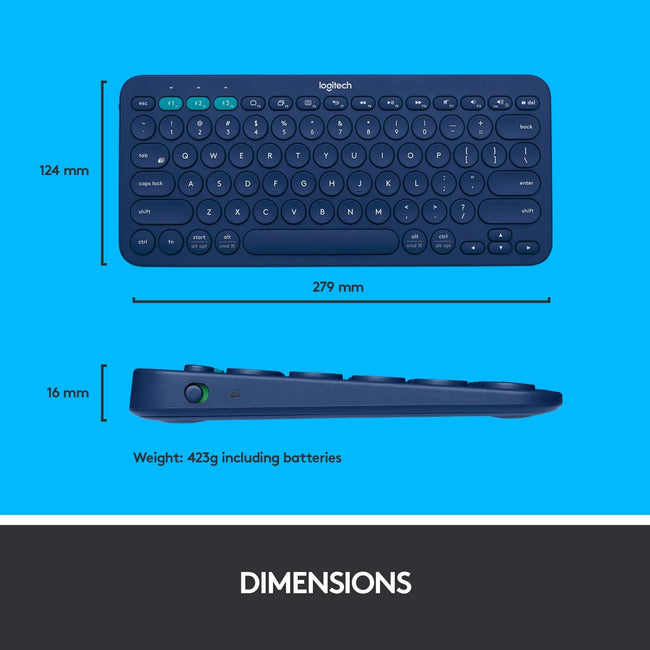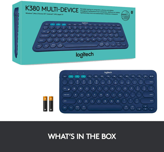 Logitech Keyboard K380 Wireless Multi-Device for Windows, Apple iOS, Apple TV Android or Chrome, Bluetooth, Compact Space-Saving Design, PC/Mac/Laptop/Smartphone/Tablet - (Blue)