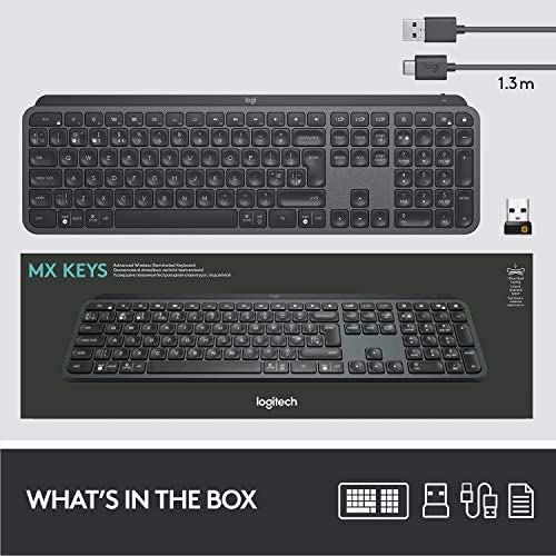 Logitech Keyboard MX Keys Advanced Wireless Illuminated Keyboard, Tactile Responsive Typing, Backlighting, Bluetooth, USB-C, Apple macOS, Microsoft Windows, Linux, iOS, Android, Metal Build - Graphite