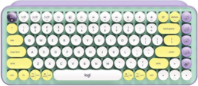 Mint, lilac, white and sunshine yellow combine in a candy aesthetic with a dash of fresh mojito allowing you to chill out with POP Keys wireless mechanical keyboard in Daydream.