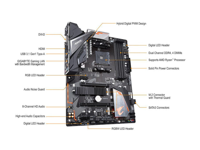 Gigabyte B450 AORUS ELITE AM4 AMD B450 SATA 6Gb/s ATX AMD Motherboard