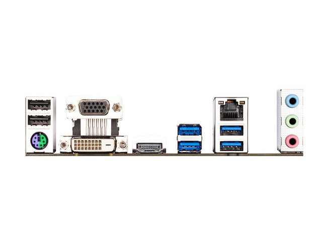 | Back I/O Ports | 1 x PS/2 keyboard/mouse port 1 x D-Sub port 1 x DVI-D port 1 x HDMI port 4 x USB 3.2 Gen 1 ports 2 x USB 2.0/1.1 ports 1 x RJ-45 port 3 x audio jacks |