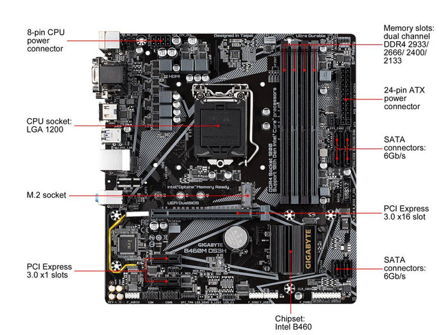 Gigabyte B460M DS3H LGA 1200 Intel B460 Micro-ATX Motherboard with M.2, SATA 6Gb/s, USB 3.2 Motherboard
