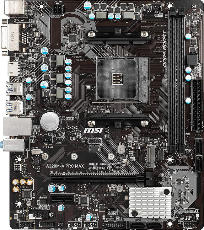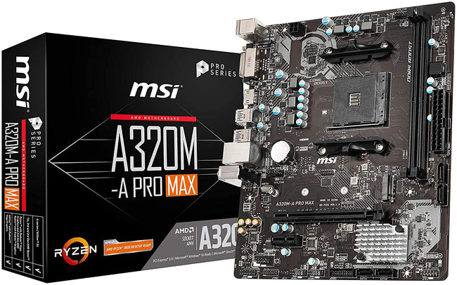 - MSI A320 Pro Max Micro ATX DDR4-SDRAM AMD AM4 Ryzen Motherboard