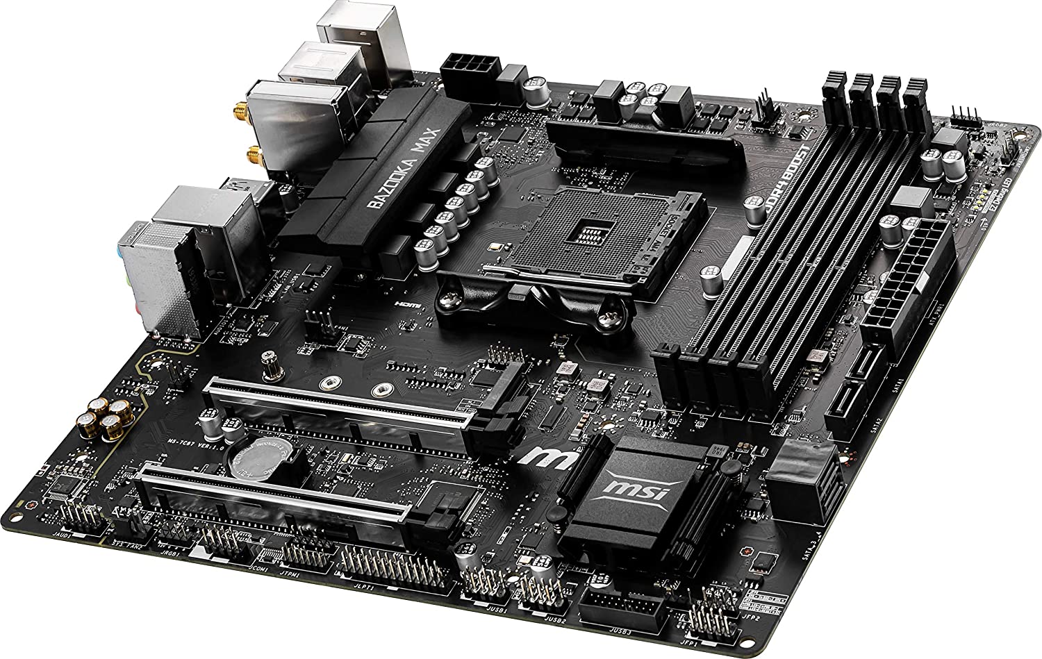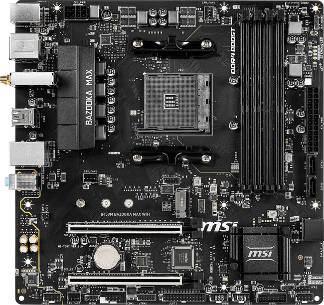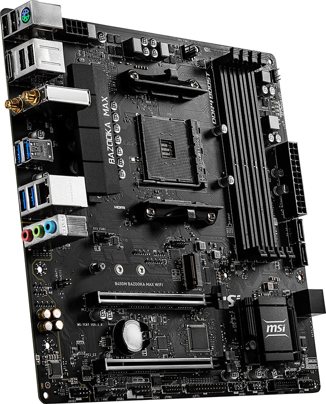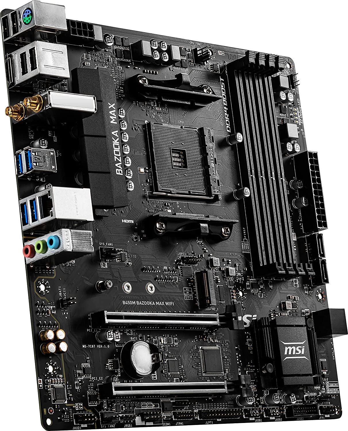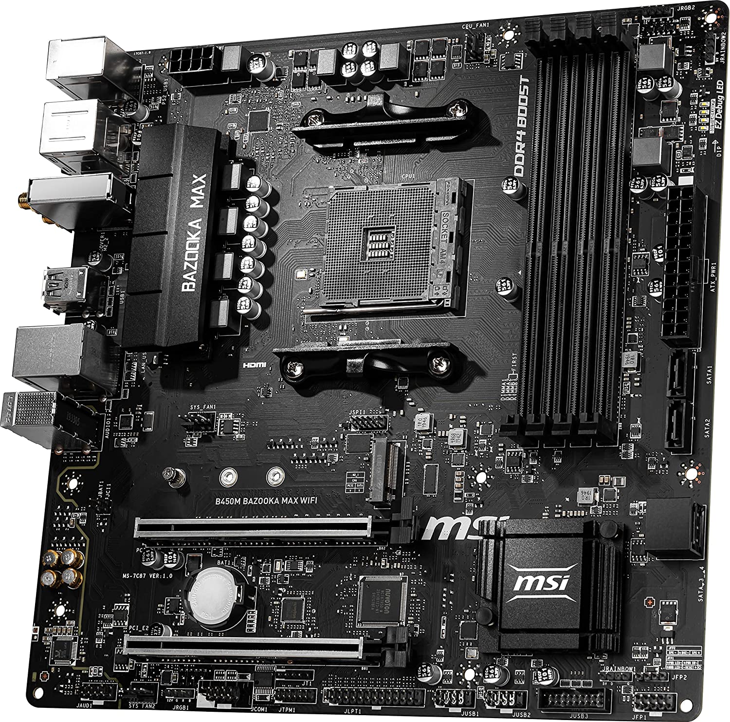 - MSI B450M Bazooka MAX WiFi Arsenal Gaming AMD Ryzen 1st, 2nd, and 3rd Gen AM4 M.2 USB 3.2 DDR4 HDMI WiFi Micro-ATX Motherboard