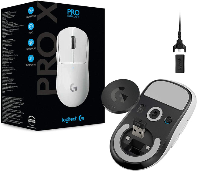 Logitech Mouse G Pro X SUPERLIGHT Wireless Gaming Mouse, Ultra-Lightweight, HERO 25K Sensor, 25,600 DPI, 5 Programmable Buttons, Long Battery Life - White