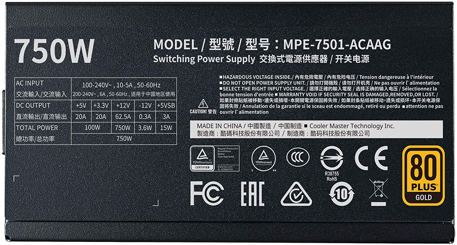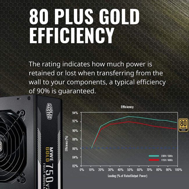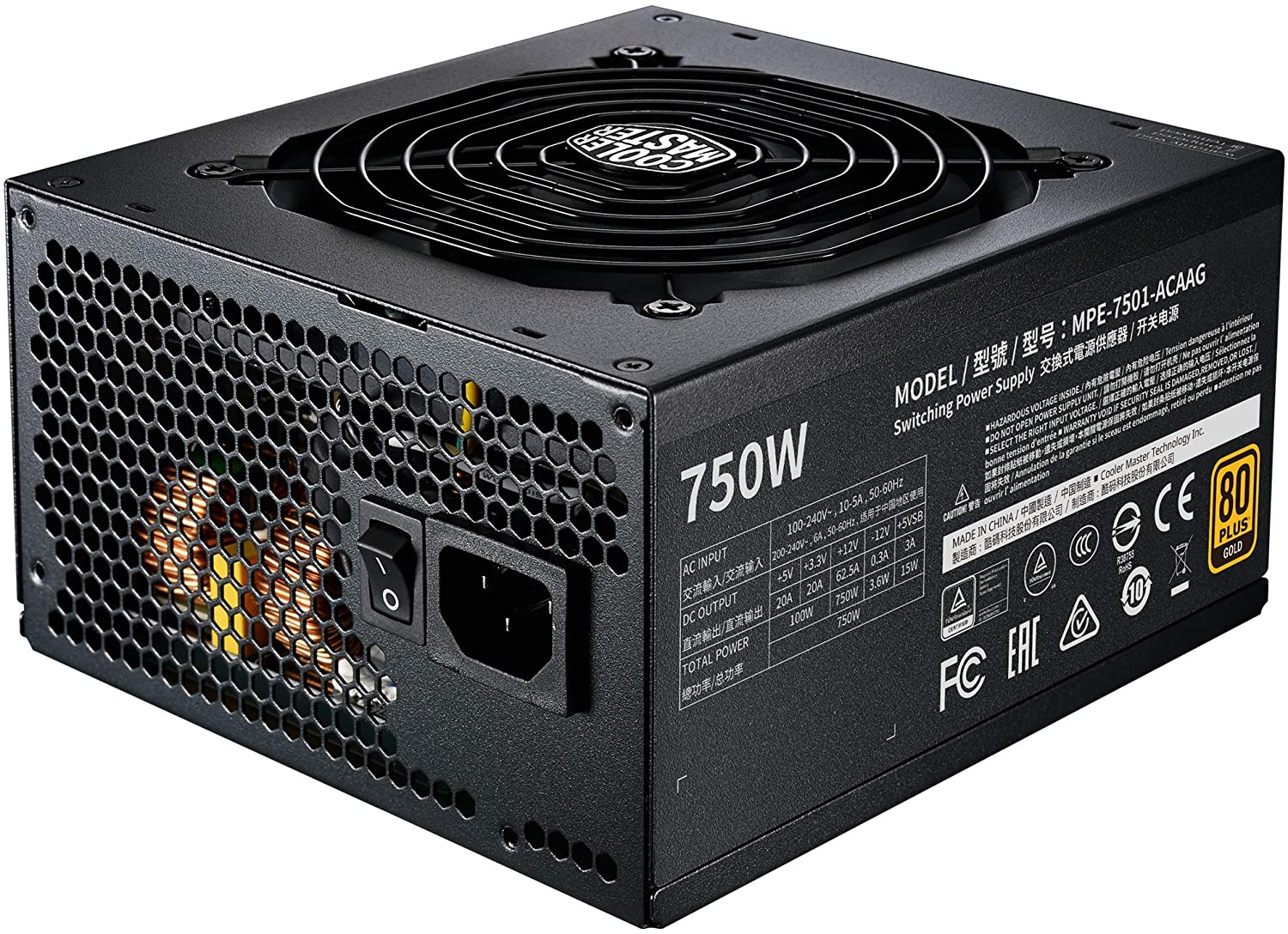 Cooler Master MWE Gold 750 V2 Full Modular, 750W, 80+ Gold Efficiency, 2 EPS Connectors, 120mm HDB Fan, Semi-fanless Operation