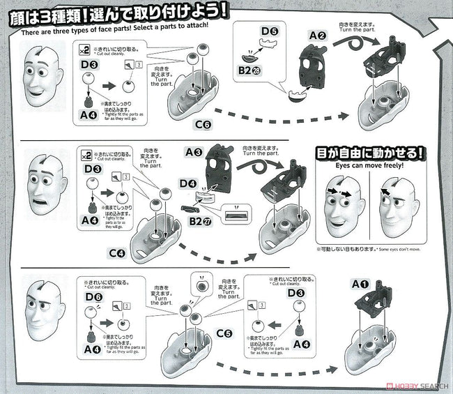 -The face is finely divided and reproduced to the eyes and mouth. Facial expression change parts are three kinds of fulfillment! Color coding is reproduced by molding color, and change of eyes is also possible by touching from the back side.