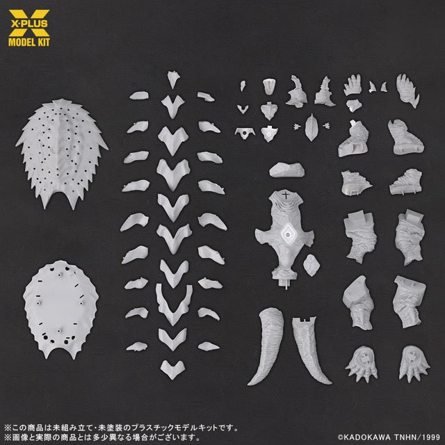 X Plus brings us a model kit of Gamera as seen in the 1999 masterpiece film "Gamera 3: Revenge of Iris"! X Plus utilizes all the know-how cultivated from their various series, such as the "Dai Kaiju" and "DefoReal" lineups, to create this amazingly detailed model kit, condensing all of Gamera's details into a figure that builds to about 11.5cm tall. The jaw parts can be replaced to display him with an opened or closed mouth, and his shell is molded in separate parts for the ultimate in detail! This unpainted, unassembled kit is the first kaiju model in the series -- keep an eye out for further developments, and order yours today!