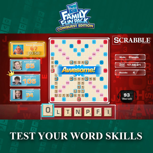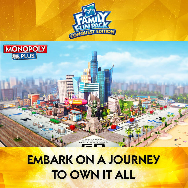 Discover the New Hasbro Family Fun Pack - Conquest Edition, for more fun family games!After the success of the MONOPOLY Family Fun Pack and the Hasbro Family Fun Pack, here are some more iconic games for countless hours of fun! In this year's edition, CONQUEST is the buzzword. Take over the city in RISK Urban Assault and MONOPOLY Plus! Take over the sea in Battleship and even take over the board in Scrabble!