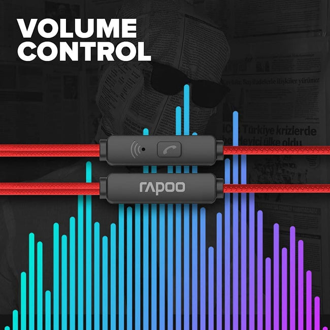 Rapoo EP28 In-Ear Headphone 3.5mm Audio Wired Earphone, Built-in Microphone with Volume Adjustment and Ergonomic Design - Red