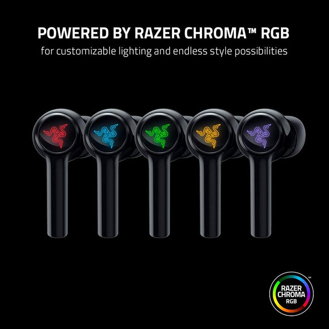 Powered by Razer Chroma RGBWith 16.8 million colors and a suite of effects to choose from, bring out your style and stand out from the crowd with the ultimate wireless earbud flex. |