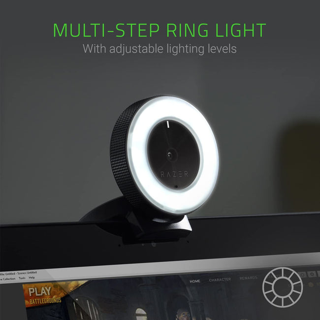 Razer Webcam Kiyo Streaming Webcam: 1080p 30 FPS / 720p 60 FPS - Ring Light w/ Adjustable Brightness, Built-in Microphone, Advanced Autofocus