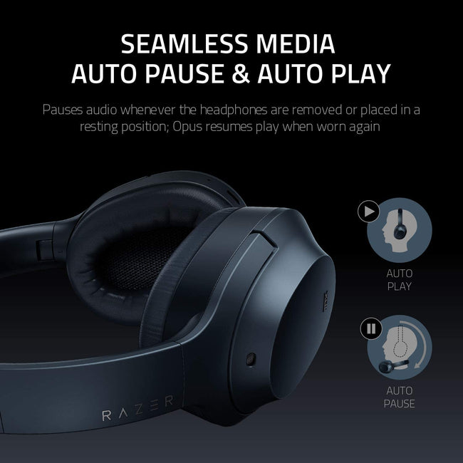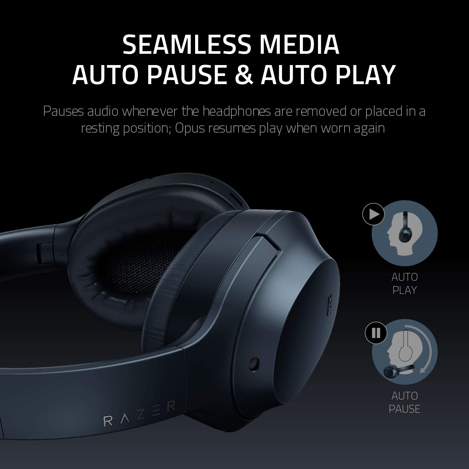 Razer Headset Opus Active Noise Cancelling ANC Wireless Headphones: THX Audio Tuning - 25 Hr Battery - Bluetooth 4.2 & 3.5mm Jack Compatible - Auto Play/Auto Pause - Carrying Case Included - Black