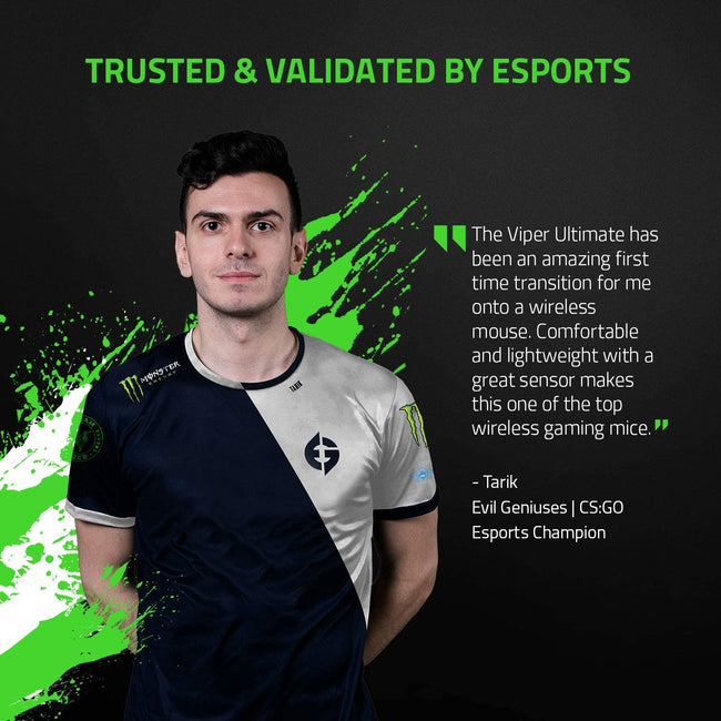 Razer Mouse Viper Ultimate Lightest Wireless Gaming Mouse: Fastest Gaming Switches - 20K DPI Optical Sensor - Chroma Lighting - 8 Programmable Buttons - 70 Hr Battery - (Black)