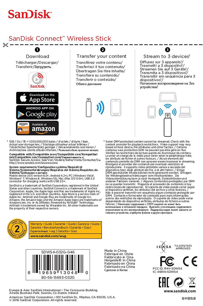 SanDisk Connect Wireless 32GB Stick Flash Drive - SDWS4-032G-G46